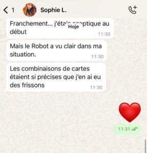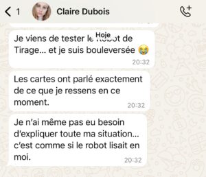 Contrairement aux tirages traditionnels, qui exigent de prendre rendez-vous, de payer des consultations coûteuses ou de passer des années à étudier le Lenormand, le Robot de Cartes vous offre des réponses immédiates, gratuites et personnalisées selon votre question.